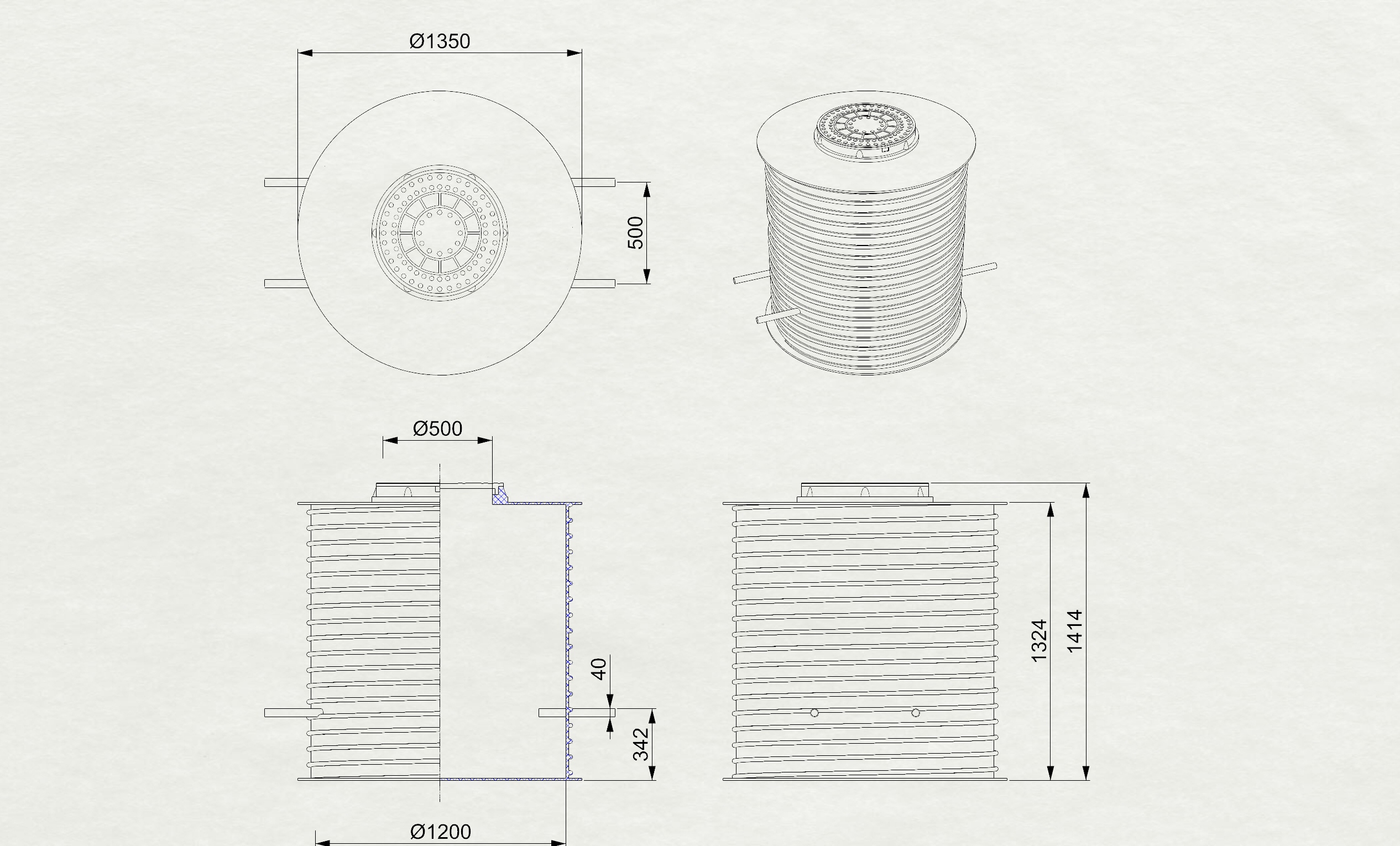 Właz rewizyjny o średnicy aż 570 mm – zapewnia szybki dostęp do środka oraz możliwość włożenia pompy hydroforowej oraz głębinowej